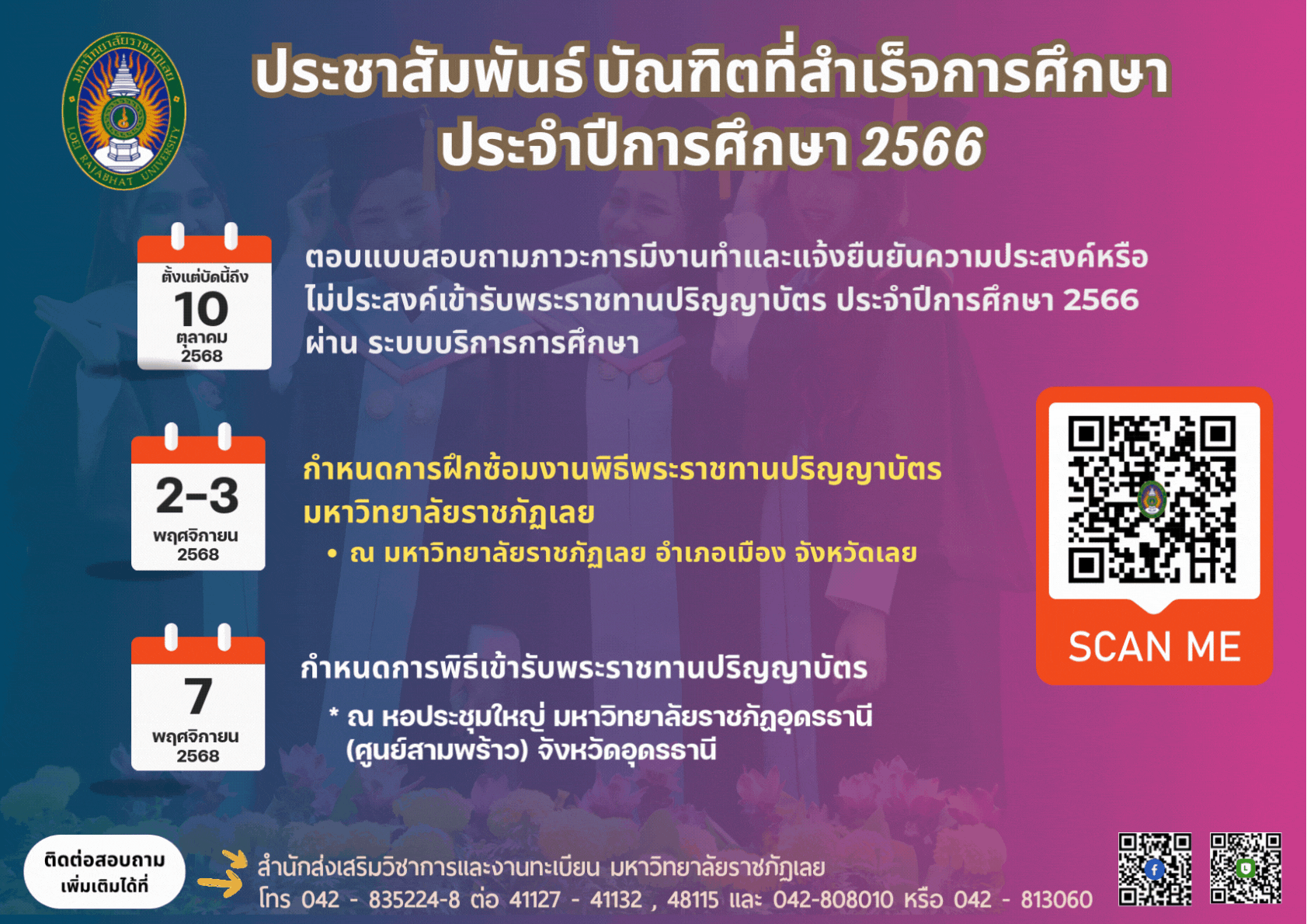 ประกาศ การขอสำเร็จการศึกษาและการขึ้นทะเบียนบัณฑิตของนักศึกษาภาคปกติ ที่คาดว่าจะสำเร็จการศึกษาในภาคการศึกษาที่ 2/2568